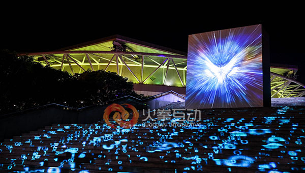 • 该产品是极弧新能源电动车上市发布会定制开发的一款人影粒子互动投影,当体验者站在大屏幕前的时候,体感摄像头会捕捉到人体影子,这时候屏幕会出现人体影子。不需要佩戴任何的感应设备,体感互动设备会自动识别体验者,支持人们跟屏幕上的人影进行互动。该产品可根据品牌方的需求定制,呈现出活动主办方的品牌文化及想要达到的各种动态效果。
